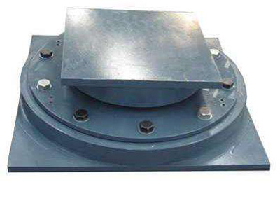 摩擦滑移隔震是开发应用较早的隔振技术之一,所用的摩擦材料多为沙石、石墨等廉价材料,标记经济且简单易行。摩擦滑移隔震系统通常有隔离地震作用的摩擦滑动机构和限位复位的阻尼向心机构组成,多为平面滑移隔震系统。该系统不能自动复位,一般需要另外加设复位装置,且滑动性能离散性大、不易控制,滑移量过大可能导致穿越隔震层的非结构构件破坏,甚至可能发生滑移失稳,这极大地阻碍了滑移隔震的发展。为了解决平面滑移系统不能自动复位问题,Zayas等于1985年在美国加州大学伯克利分校研发了摩擦摆隔震装置,称之为摩擦摆系统/支座(Friction Pendilum System/Bearing,简称FPS/FPB)。该装置不仅具有平面滑移隔震装置的对地震激励频率范围的低敏感性和高稳定性,特有的圆弧滑动面还使其具有复位功能,无需附设阻尼向心机构,故而在实际应用中更为简便,且增加了隔震装置的可靠度。摩擦摆隔震支座是将传统的平面滑移隔震装置的摩擦滑移面由平面改为球面,从而可依靠自身重力自动回复。该支座主要由上、下支座板和一个铰接滑块组成。摩擦摆隔震支座嵌在滑动容腔中的铰接滑块与滑动面具有相同的曲率半径,可与滑动面完全贴合,并使上支座在支座滑动时始终保持水平。滑动面上涂有低摩擦材料,如聚四氟乙烯(特氟龙)等,可在滑动过程中耗散能量。当滑动界面受到的地震作用超过静摩擦力时,地面水平运动会促使滑动在其圆弧面内滑动,从而迫使上部结构轻微抬高,发生单摆运动。然后,支座会在自身受到的竖向荷载作用下自动回复。摩擦摆隔震支座的水平力为滑动面摩擦力和上部结构沿滑道上升产生的恢复力的合力,而提供的恢复力使支座能依靠其承受的重力自动往中心位置回复,使地震响应得到控制,并且该支座的刚度中心有自动与隔震结构的质心重合的趋势,因而能在程度上消除结构的扭转运动。摩擦摆隔震支座的周期、竖向承载力、阻尼比、侧重位移和抗拉力等指标可以进行单独控制,该特性十分便于设计人员对隔震系统进行优化设计。